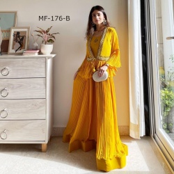 Product type:Looking for this same colour beautiful designer gown on heavy georgette fabric with crush work and handwork real khatli Work