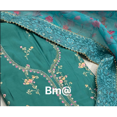 Product type: BM presenting a beautiful fancy muslin fabric salwar dress material with Handwork & Kashmiri embroidery work