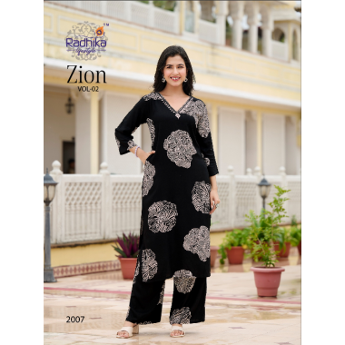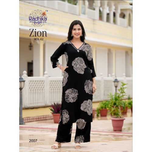 Elevate your wardrobe with the Zion Vol 2 Top Palazo Cord Set, featuring intricate handwork and a beautiful foil print on pure rayon fabric. This 2-piece set includes a stylish top and pant, perfect for making a statement on any occasionProduct type:Elevate your wardrobe with the Zion Vol 2 Top Plazo Cord Set, featuring intricate handwork and a beautiful foil print on pure rayon fabric. This 2-piece set includes a stylish top and pant, perfect for making a statement at any occasion