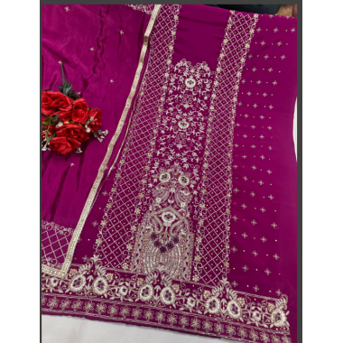 Premium Pure Crepe Suit | Chinon Dupatta | Handwork Detailing Intricate handwork on the sleeves and bottom elevates the look, making it ideal for celebrations, gatherings, or elegant daywear-SK-1036