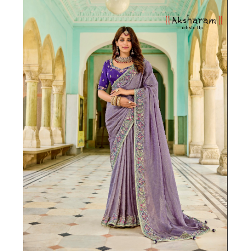 A very heavy look of party wear viscose tissue silk saree with embroidery work in blouse and saree.