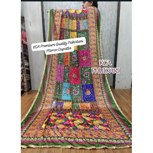 A beautiful traditional print work with embroidery and mirror works on chinnon fabric dupatta wear for all occasions.