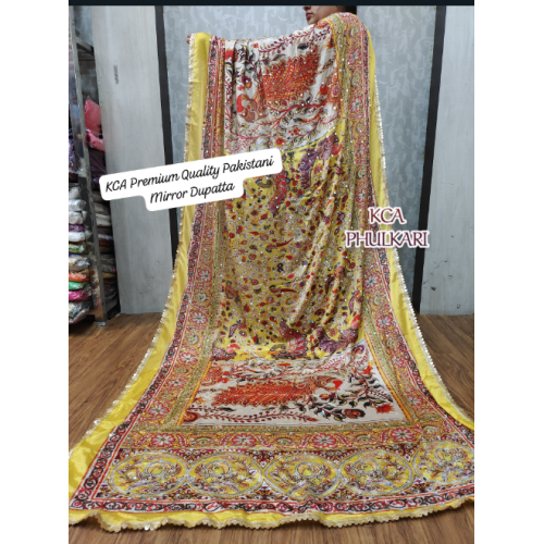 KCA Presenting a heavy embroidery and digital print work with lace border Dupatta-KCA-2020