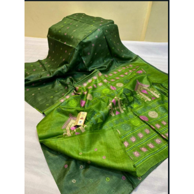 Product type:Pure handloom tussar ghicha silk saree with embroidery and print work with unstitched blouse