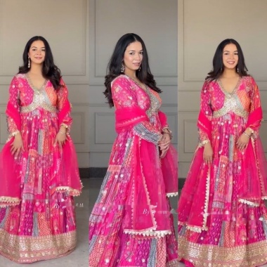 Product type: A party wear new aliya cut long kurti with bottom and dupatta .
