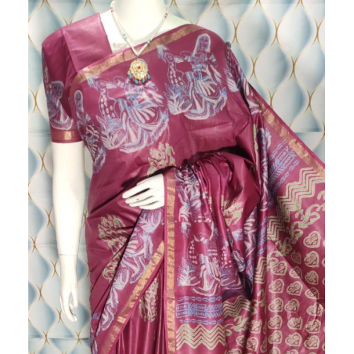 We are bringing you a beautiful color collection of premium Katan viscose silk saree with print work with running unstitched blouse.