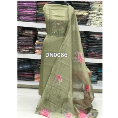 A beautiful Banaras fabric salwar dress material with embroidery and print work which can bring you a pleasant wear for all occasions.