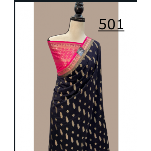 Varanasi presenting a Semi Georgette woven patterns allover the saree buta worked zari with attractive design jacquard rich pallu and brocade blouse-501