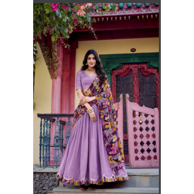 VARNIKA – A Symphony of Tradition and Elegance Step into timeless grace with the VARNIKA Lehenga Choli collection, where heritage meets haute couture. Crafted from luxurious Vichitra Silk and adorned with shimmering sequins and delicate thread embroidery, each piece is a tribute to South Indian artistry.