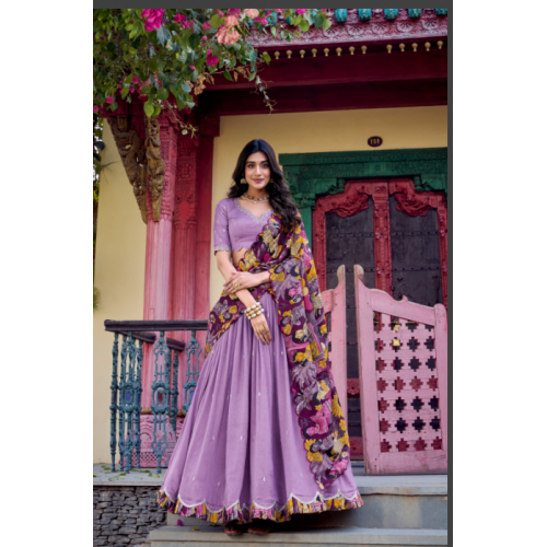 Product type: VARNIKA – A Symphony of Tradition and Elegance Step into timeless grace with the VARNIKA Lehenga Choli collection, where heritage meets haute couture. Crafted from luxurious Vichitra Silk and adorned with shimmering sequins and delicate thread embroidery, each piece is a tribute to South Indian artistry.