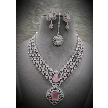 | Product Name | Stylish Design Crystal Diamond single Layer Necklace with Earrings & Mang Tikka Jewlery Set | |