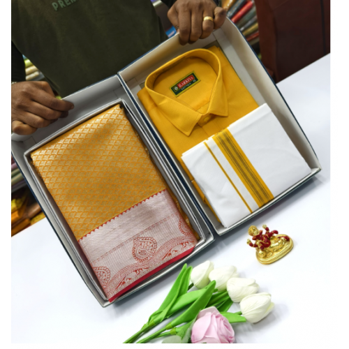 - Pure silk material for the sarees, ensuring luxury and elegance
