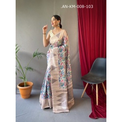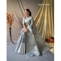 Fabric- Linen Silk Sarees with Silver Zari Weaving Motifs all over.