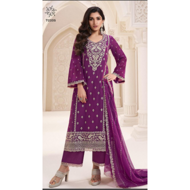 Pure Fendy Silk with Heavy Embroidery Sequence Work Fully Stitched Top–Sharara–Dupatta Set-NSR‑887