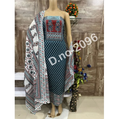 We are presenting you a pure cotton with beautiful print with fancy work in neck salwar dress material -2096 -B