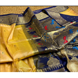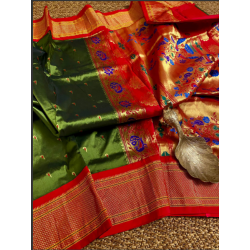 Saree Fabric: Presenting pure handloom Narayan pet pattu sarees allover Zari woven Meena motifs and Kanchi temple borders.
