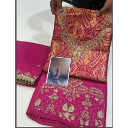 Product type: Exquisite Moonga Silk tops with fancy thread embroidery, paired with Santoon bottoms and intricately embroidered Bembery Chiffon dupattas with beautiful print art. Perfect for weddings, formal events, and special occasions, this ensemble exudes elegance and sophistication