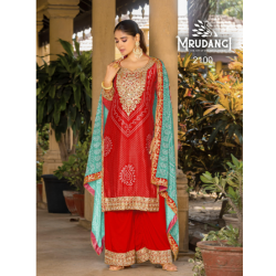 Product type:Full Stitch Convenient and ready-to-wear Real chinon fabric palazzo salwar suit with embroidery and mirror work .This MRUDANGI outfit sounds stunning and Perfect for special occasions or everyday glamour with real chinon Fabric
