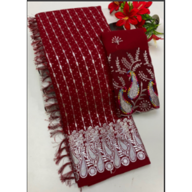 Poduct type:We are presenting a new arrival of georgette fabric party and occasional wear georgette saree with embroidery work blouse unstitched piece.