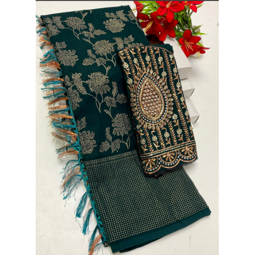 Poduct type:We are presenting a new arrival of georgette fabric party and occasional wear georgette saree with embroidery work blouse unstitched piece.