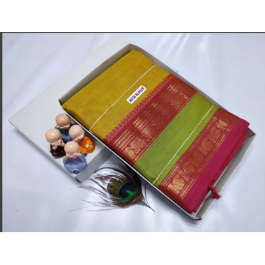 Kanchi Cotton Sarees Collections Kanchi Bridal Collections with Copper Zari, Silver Zari, Gold Zari and Thread Borders