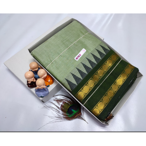 A beautiful party and casual wear Kanchi  cotton saree with temple weaving pattern with contrast color border and pallu