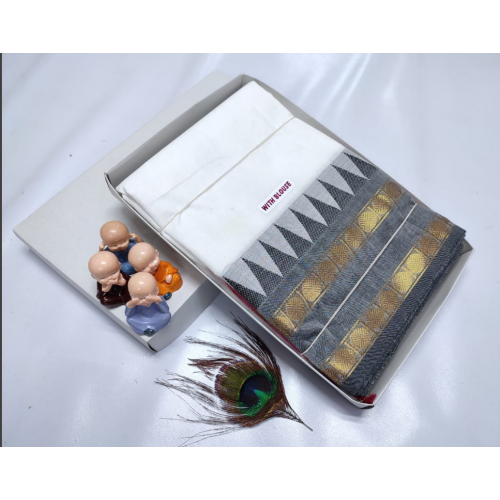 A beautiful party and casual wear Kanchi cotton saree with temple weaving pattern with contrast color border and palluProduct type: A beautiful party and casual wear Kanchi cotton saree with temple weaving pattern with contrast color border and pallu