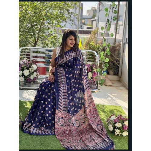 Product type:A beautiful party wear Semi gaji original saree ajrak gaji bandhej print