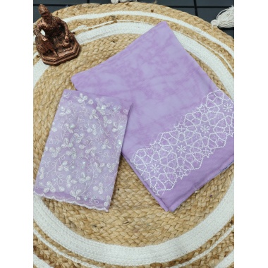 Latest release 6 colors in this super hit Georgett print fabric with additional smoke work with beautiful leather white khadi work with embroidery blouse.