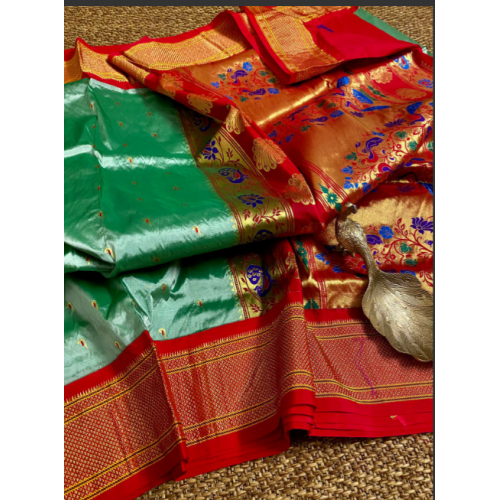 Product type: A perfect handloom Narayan pet pattu sarees all over Zari woven Meena Motti pattern with Kanchi temple borders.