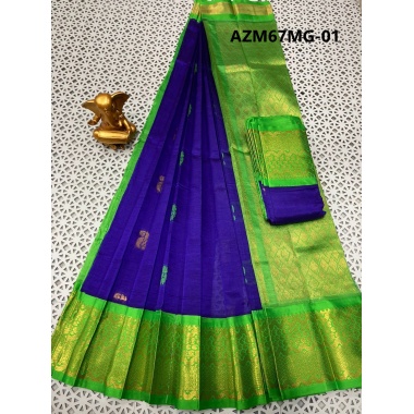 Party wear and casual wear traditional kanchi kuppatam pattu with butta pattu sarees with Full contrast rich pallu and blouse  with weaving border -AZM67MG