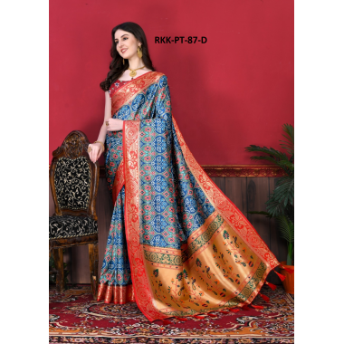 RK launching a party wear soft semi paithani silk saree with neautiful patola print with meenakarai weaving border