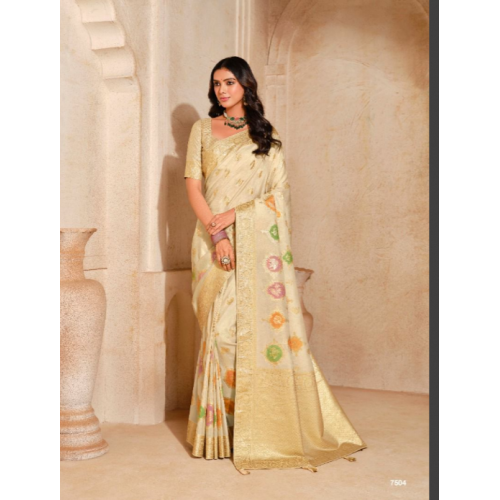 Elegance personified Silk meets vibrant designer weaving, creating a stunning combinations sophisticated charm on silk, perfect for making a statement