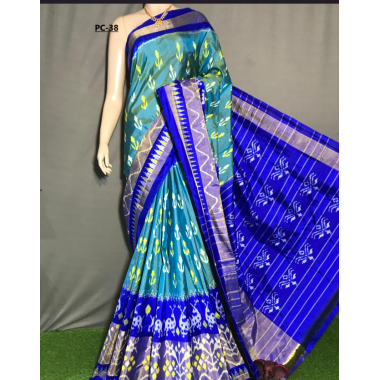 A traditional pochampally saree in beautiful weaving design in border with a contrast color blouse.Product ID | VN-PC38 | |