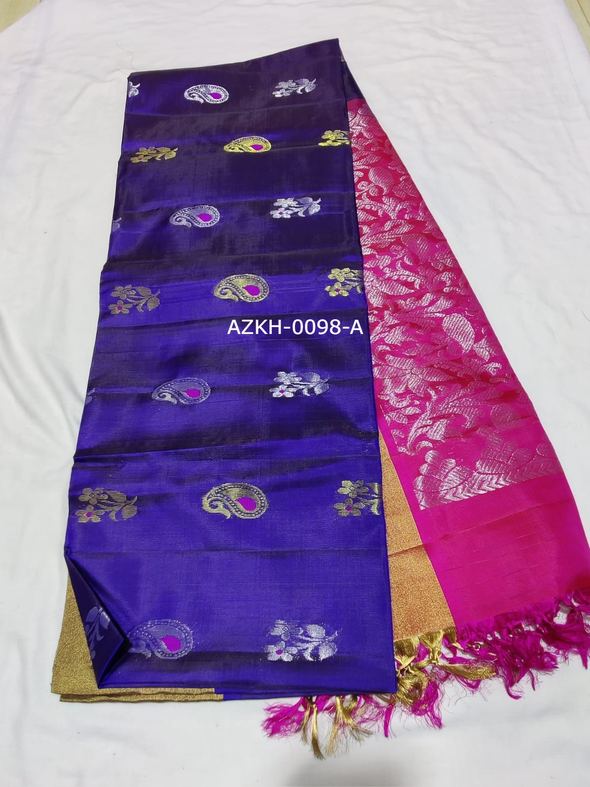 - Stitched buttas: Intricately woven designs throughout the saree.