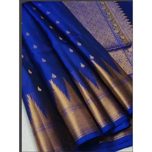 - Stitched buttas: Intricately woven designs with Temple patttern throughout the saree.