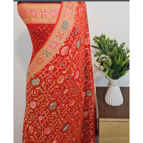 Product type: Pure handloom TradItional wear bandhni georgette silk banarasi pure Khadi bandhani silk Saree.