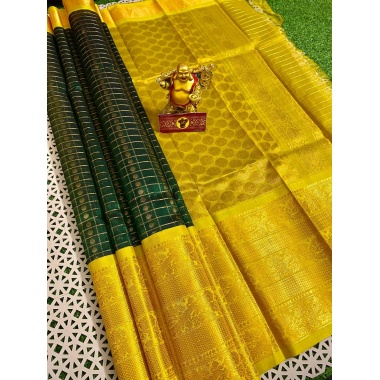 We are presenting you a beautiful bridal wear pure Kanchipuram kupadam silk saree with contrast