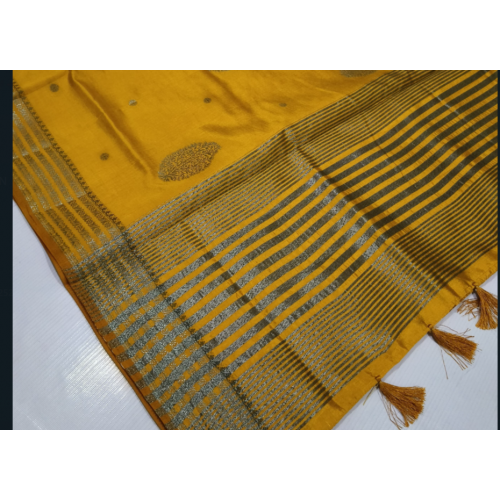 Premium soft tusser silk saree with silver and resham jari butta allover and exclusive jari silver jari border with exclusive jari lines rich Pallu and Blouse attached -TS-95