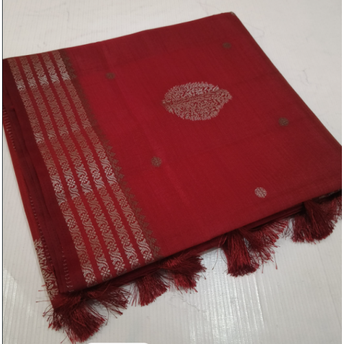 Premium soft tusser silk saree with silver and resham jari butta allover and exclusive jari silver jari border with exclusive jari lines rich Pallu and Blouse attached -TS-98