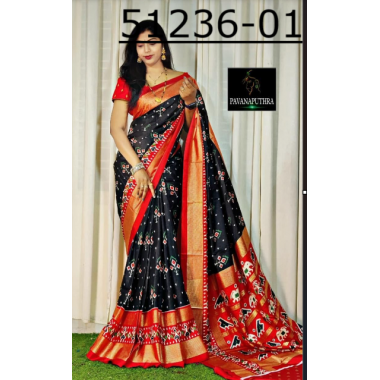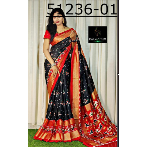 New Arrival launching new soft dola silk with printed Saree With Foil Gold Border With Paisley Style printed pallu & border comes with Foil Zari unstitched blouse.-51236-A