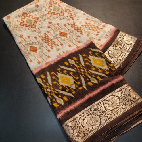 Patola dola sarees with self brasso design and digital pochampalli ikkat prints with running blouse-MX-2006