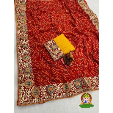 | SAREE WORK | Leheriya with Fancy gota patti lace around the saree. |