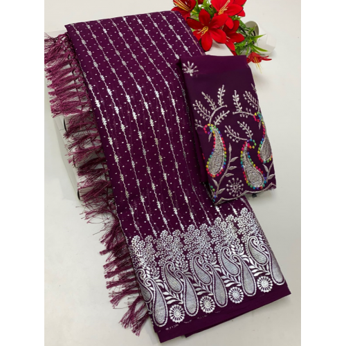 Product type: We are presenting a new arrival of georgette fabric party and occasional wear georgette saree with embroidery work blouse unstitched piece.