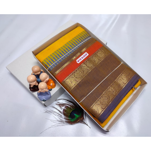 Kanchi Cotton Sarees Collections Kanchi Bridal Collections with Copper Zari, Silver Zari, Gold Zari and Thread Borders