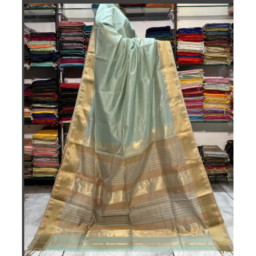 Product type: Celebrate the spirit of tradition with elegance, Introducing our Maheshwari Handwoven Hansa Border Saree—crafted in a luxurious blend of half silk and half cotton, and proudly bearing the India Handloom Mark.