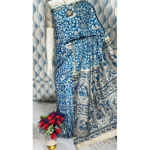 Product type: Party wear grand launching Semi Katan silk saree with block madhubani print