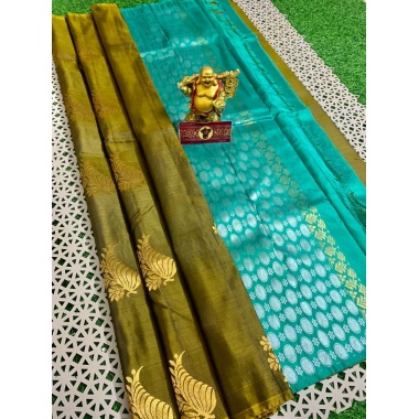 The Beautiful and Classy Enriched Zari Weaving Motifs and trending Collection Without Borders with contrast color weaving Pallu .