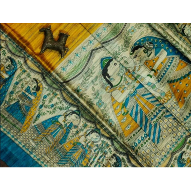 Product type:Pure handloom tussar ghiccha Madhubani screen print silk saree with Un stitched blouse