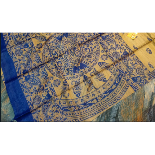 Product type:Pure handloom tussar ghiccha Madhubani screen print silk saree with Un stitched blouse